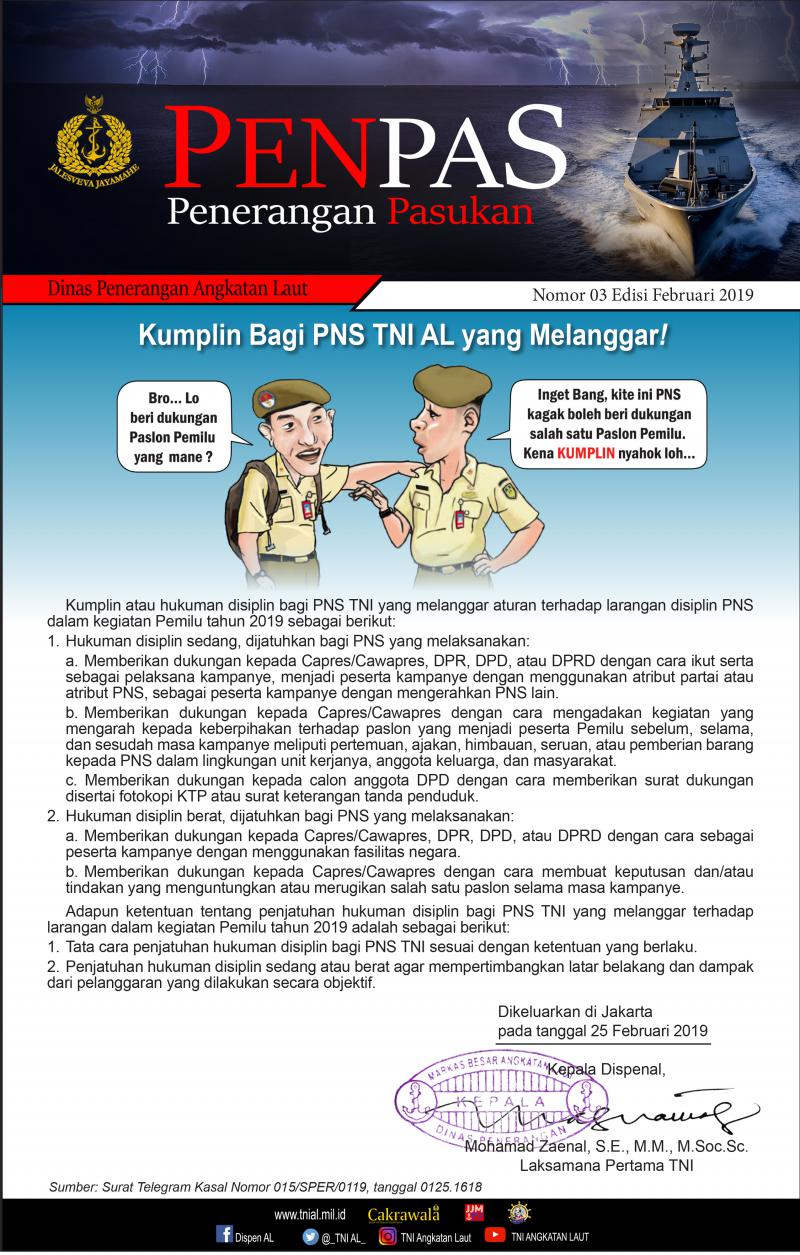 - Kumplin Bagi PNS TNI AL yang Melanggar! Nomor 03 Edisi Februari 2019
