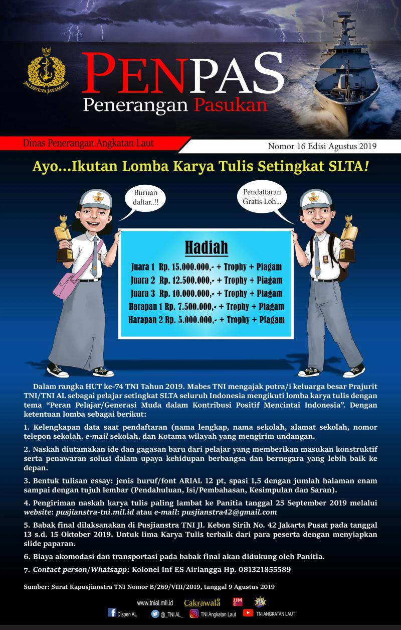 - Ayo...Ikutan Lomba Karya Tulis Setingkat SLTA! Nomor 16 Edisi Agustus 2019