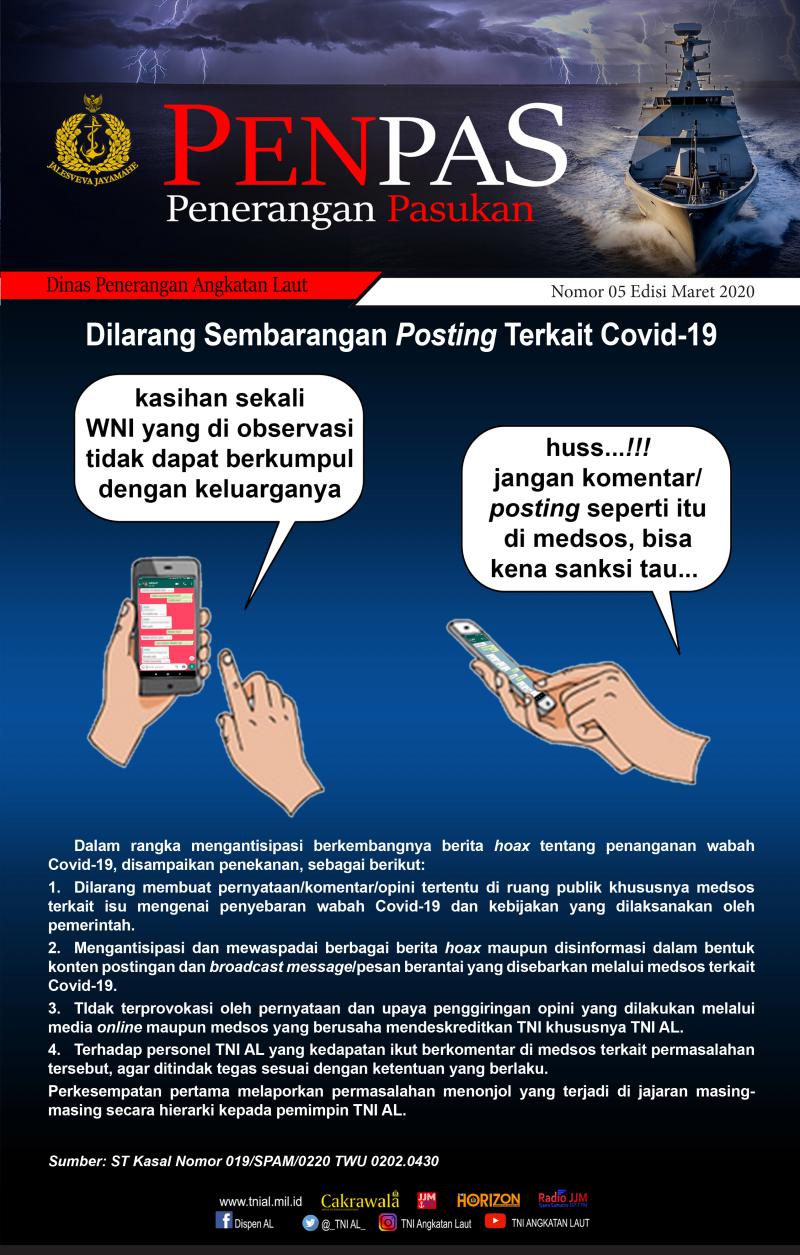 - Dilarang Sembarangan Posting Terkait Covid-19 Nomor 05 Maret 2020