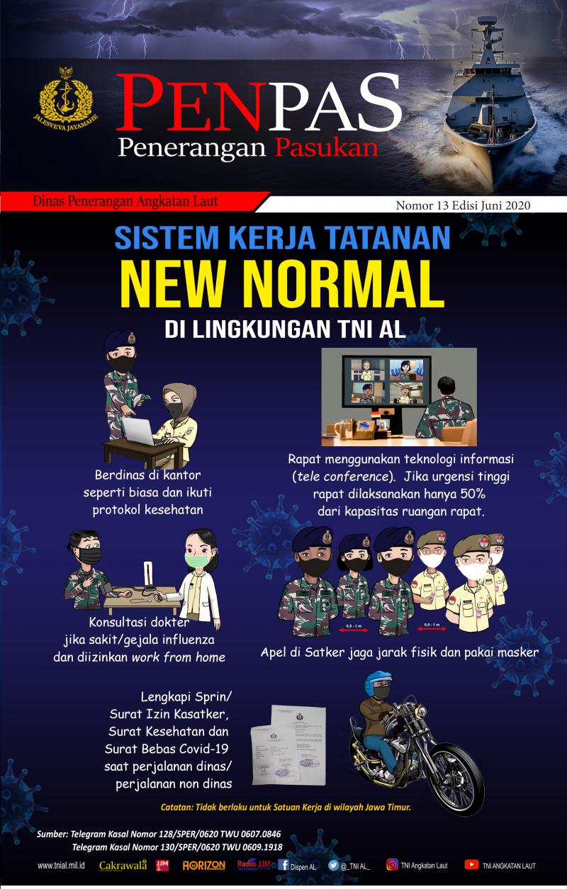 - Sistem Kerja tatanan New Normal di Lingkungan TNI AL Nomor 13 Edisi Juni 2020