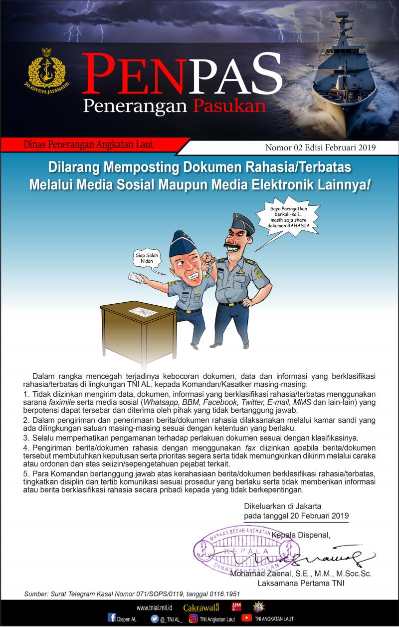 - Dilarang Memposting Dokumen Rahasia/Terbatas Melalui Medsos... Nomor 02 Edisi Januari 2019