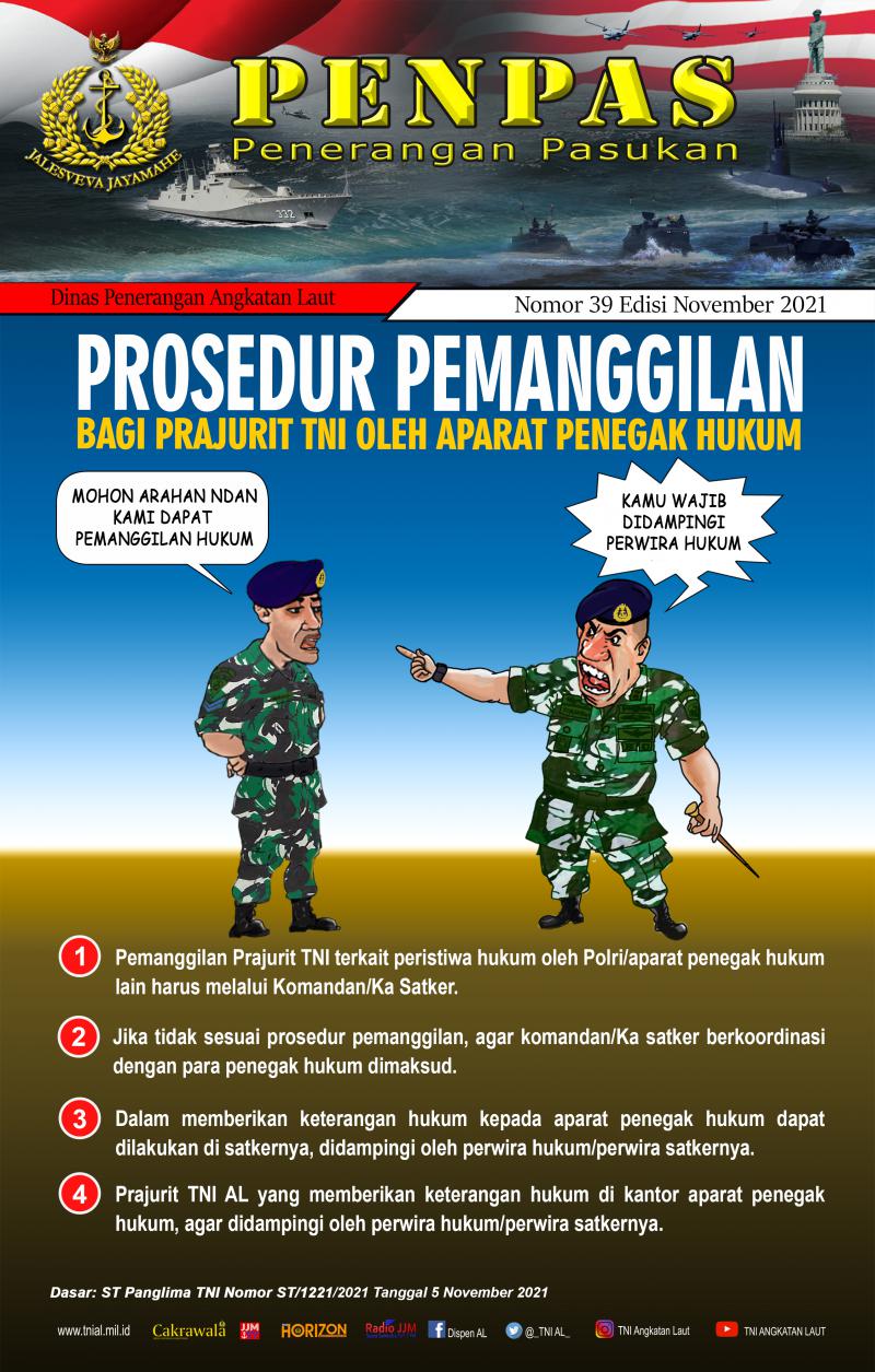 - Prosedur Pemanggilan Bagi Prajurit TNI Oleh Aparat Penegak Hukum Nomor 39 Edisi November 2021