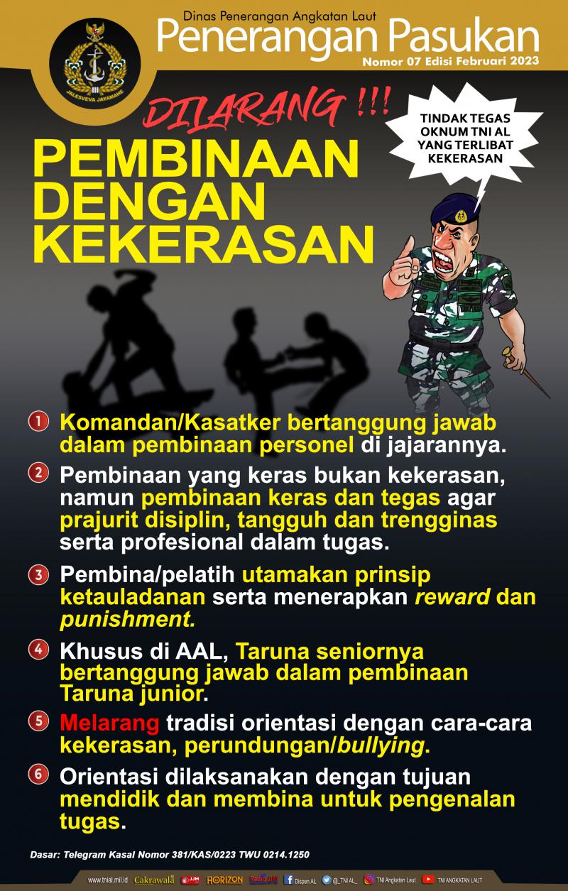 - Dilarang!!! Pembinaan Dengan Kekerasan Nomor 07 Februari 2023