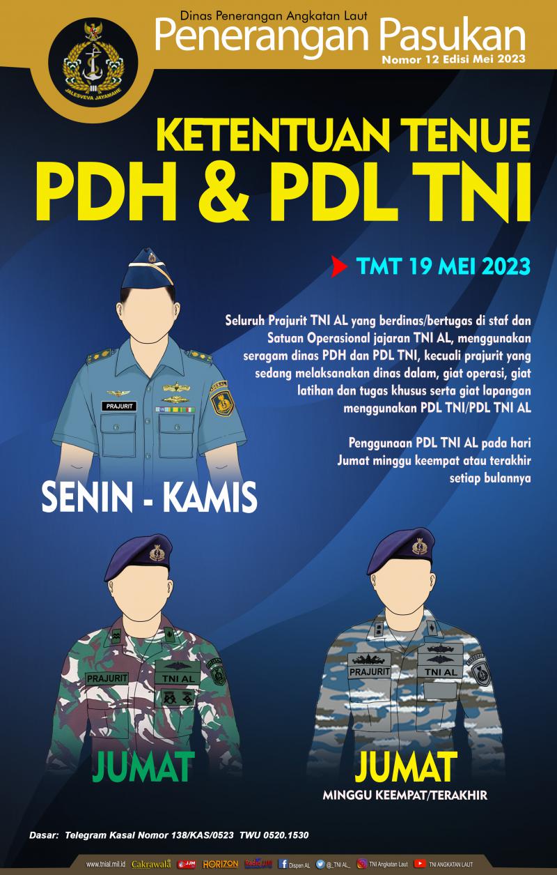- Ketentuan Tenue PDH & PDL TNI Nomor 12 Mei 2023