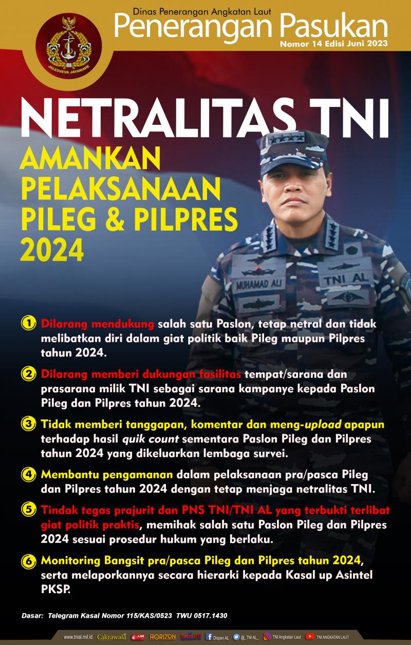 - Netralitas TNI, Amankan pelaksanaan Pileg & Pilpres 2024 Nomor 14 Juni 2023