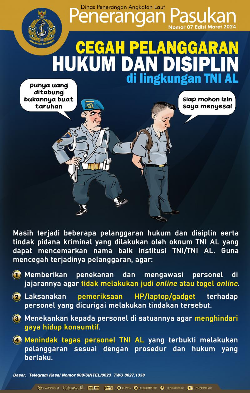 - Cegah Pelanggaran Hukum dan Disiplin di Lingkungan TNI AL Nomor 07 Edisi Maret 2024