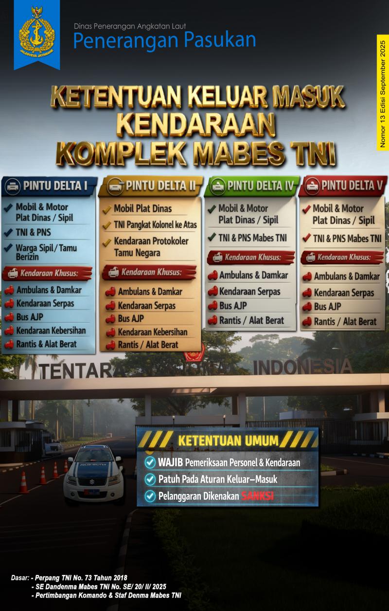 - Ketentuan Keluar Masuk Kendaraan Dinas di Komplek Mabes TNI No. 13 Edisi Desember 2025